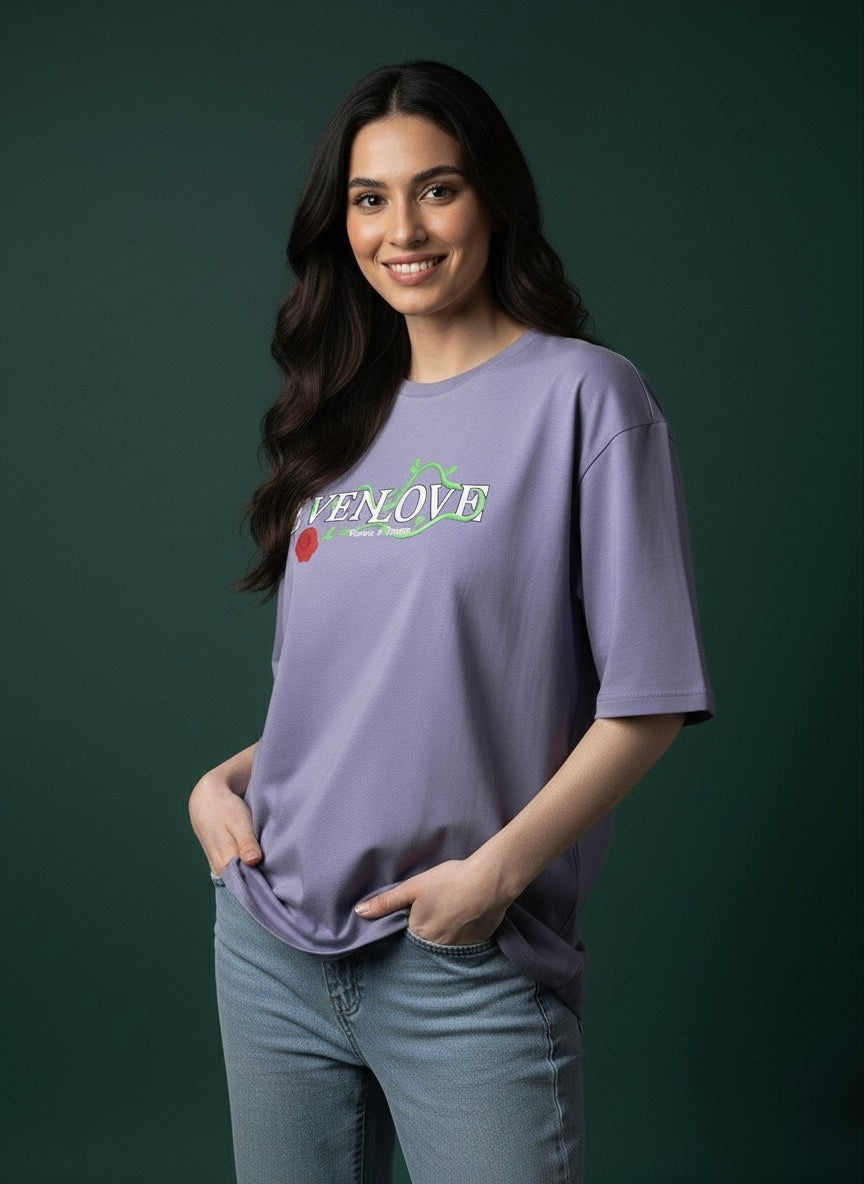 This ice blue t-shirt boasts an oversize fit and is crafted with soft cotton fabric. Perfect for any casual occasion, this t-shirt features a delicate rose print for a touch of elegance. Elevate your wardrobe with this stylish and comfortable piece.