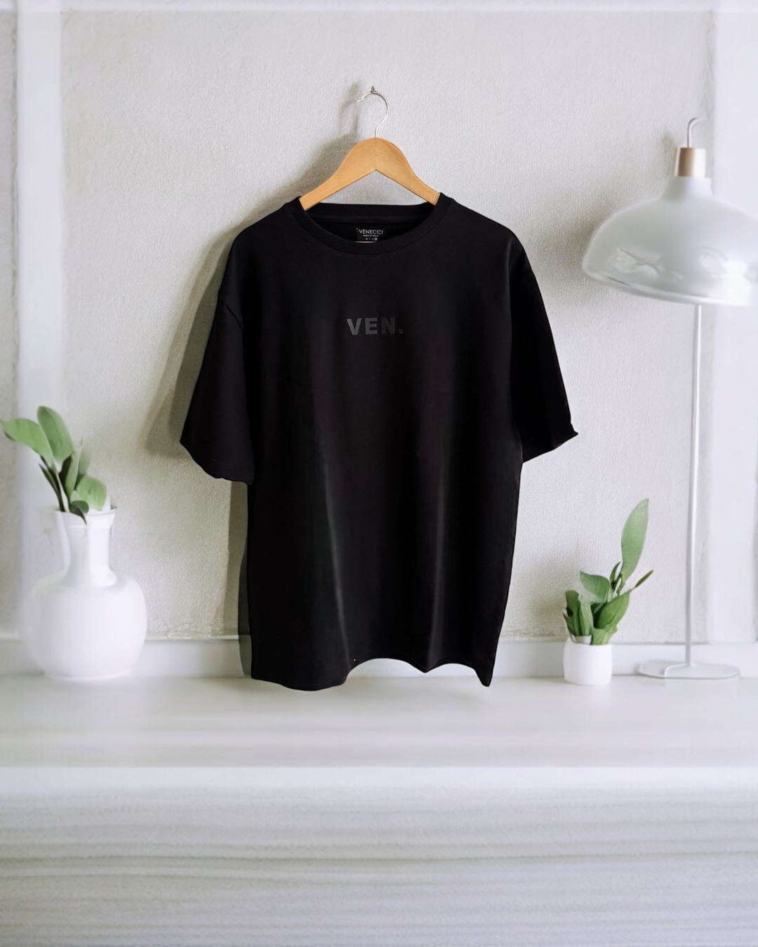 Create a bold, stylish look with our black oversized t-shirt featuring the iconic Ven branding. Made with high-quality materials, this t-shirt offers both comfort and fashion. Perfect for any occasion, this versatile piece will elevate your wardrobe with its modern and trendy design.